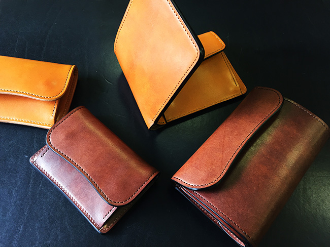こちら先日サンプルとして仕入れたフルグレインブライドルレザーで、試しに製作してみました。