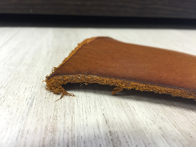 フルグレインもこのようにロウの成分と油分がしっかり染み込んでいます。 それではなぜフルグレインタイプを作り続けているのかという理由はただ一つ、「最も丈夫だから」ということです。