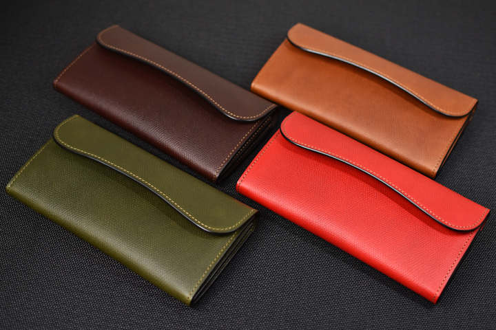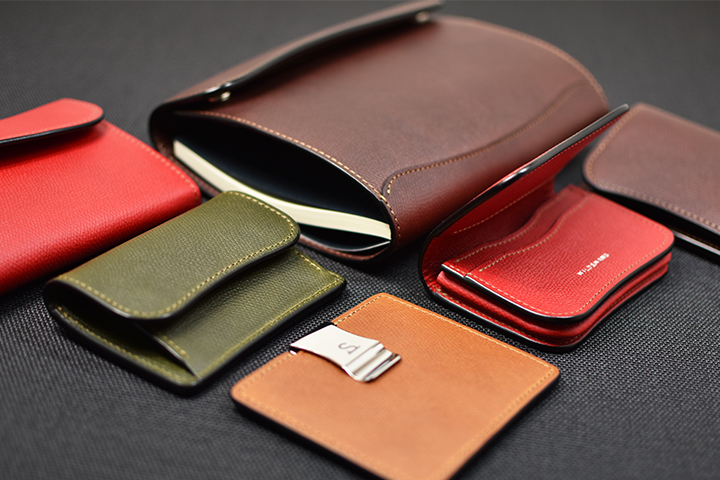 イタリアの名門タンナー、バダラッシ・カルロ社のミネルバリスシオに型押しを施した皮革 を用いた革小物6種をご紹介致しました。