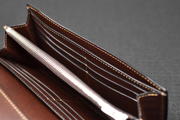 たっぷりとした容量と重厚感のある外観が印象的な大型長財布です。