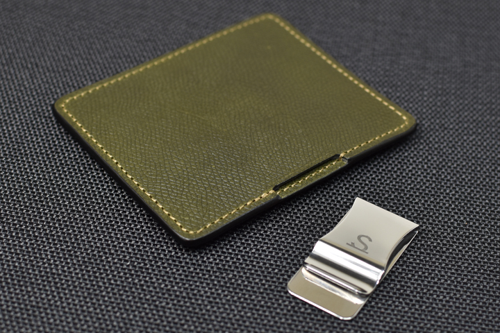 つい先日WILDSWANSのラインナップに加わったばかりのモデルで、ステンレススチール製のクリップ金具を装着したマネークリップウォレットです。
