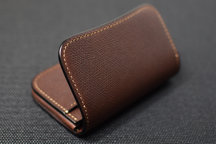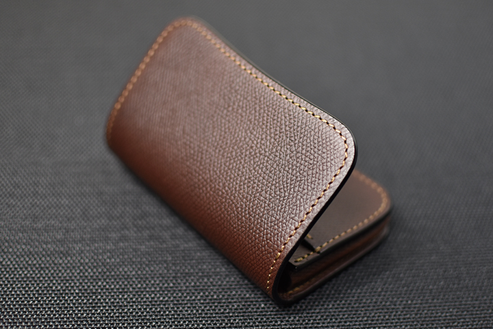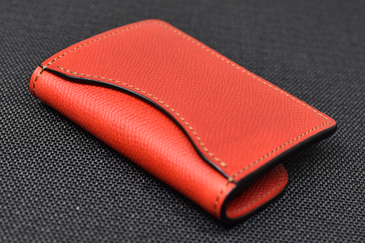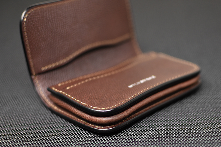 美しく優雅な曲線によるデザインと、重層のコバが印象的な名刺入れです。 収納量も豊富で、伸縮するマチ構造によって厚みを変えるという構造も特徴的なモデルです。