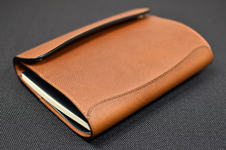 ノートの収納は容易で、内装の両端に設けられたポケットにノートの表紙と裏表紙をそれぞれ差し込めば完了です。