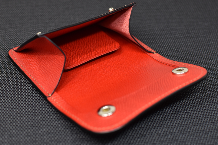 フラップを開くと内装はコインケースの作りになっています。