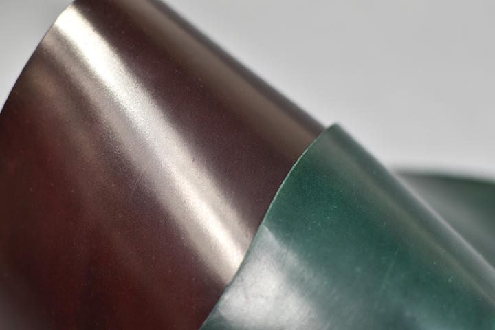 コードバンと一口に言っても製造するタンナーそれぞれに製法や仕上げが異なりますが、HORWEEN社のシェルコードバンは油分をしっかり浸透させており、表面の肌理が細かく、しなやかでしっとりとした手触りが特徴です。