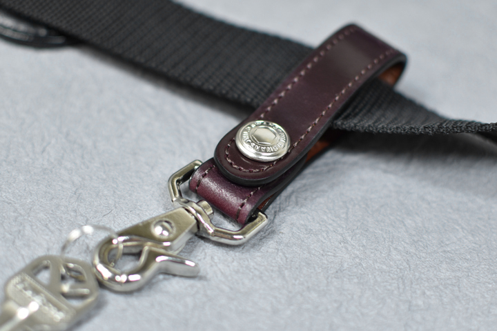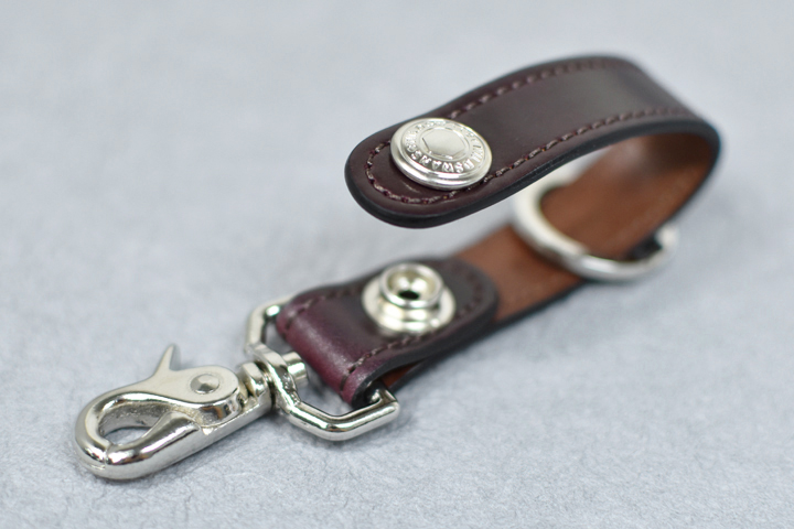 BRANCHはコバや縫製などは他のアイテムと同様の品質で仕上げられており、ナスカン金具やループ状の本体によって様々な場所に取り付けて持ち運ぶことが出来るキーホルダーです。