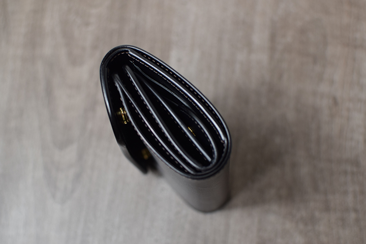 内装はスペースを十分に生かすことで無駄なくカード、コイン、紙幣を収納することができます。