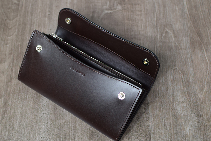 こちらも背面のカードポケットを備え、本体サイドには一万円札がちょうど入るサイズの札室も設けています。TONGUE同様、様々なシーンでお使い頂けるアイテムです。
