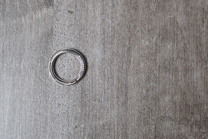 また、BRANCHにはキーキャップとは別にシルバーカラーの二重リングが付属されます。BRANCHにカギを装着する際には、先ず二重リングにカギを付けてから、こちらをBRANCHの帯に通すような使い方が一般的です。