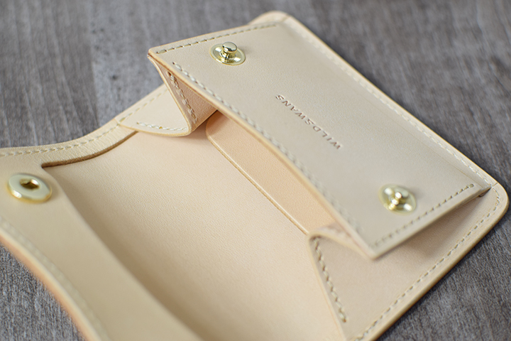 TONGUEより一回り大きな両マチ式のコインケースは、コインやカードもより余裕を持って収納できます。
