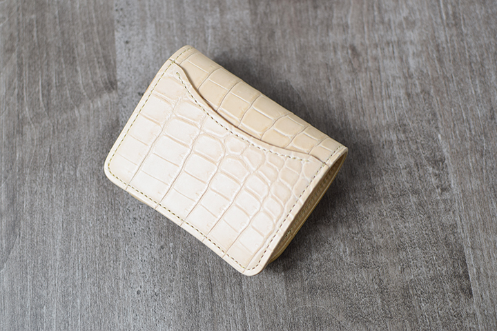 コンパクトなコインケースTONGUEは、ナチュラルカラーのクロコダイルの仕様となることでエイジングが楽しみな一品となりました。