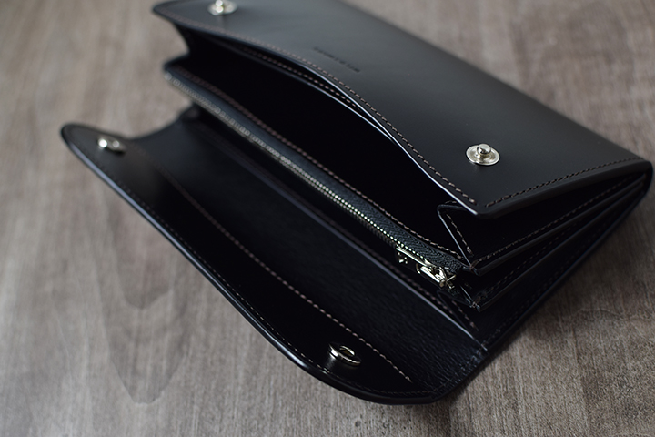 こちらも背面のカードポケットを備え、本体サイドには一万円札がちょうど入るサイズの札室も設けています。TONGUE同様、様々なシーンでお使い頂けるアイテムです。