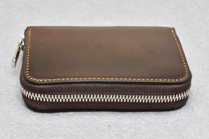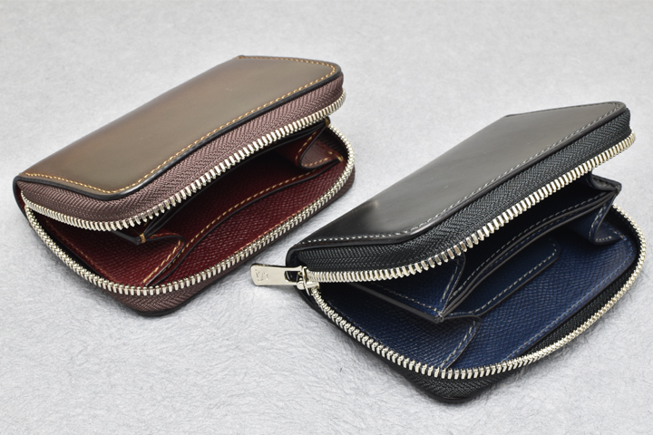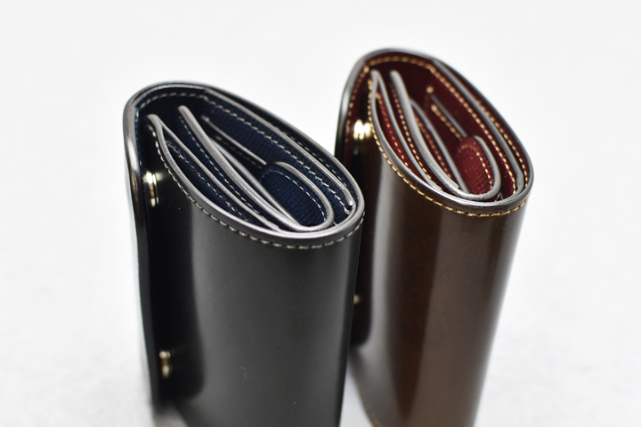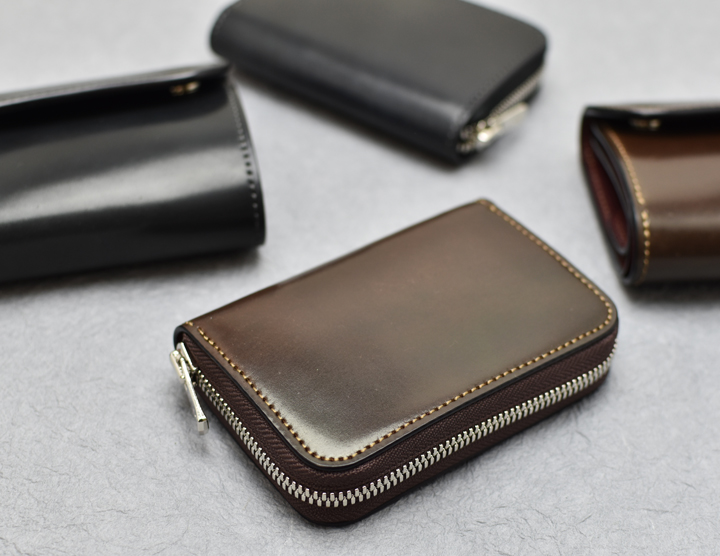 外装は横長の一枚革が使用されており、シェルコードバンの表情や経年変化をダイナミックにお愉しみ頂けます。