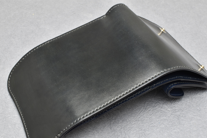 切り返しや装飾の無いプレーンな外装により、シェルコードバンの革感は十二分に伝わって参ります。