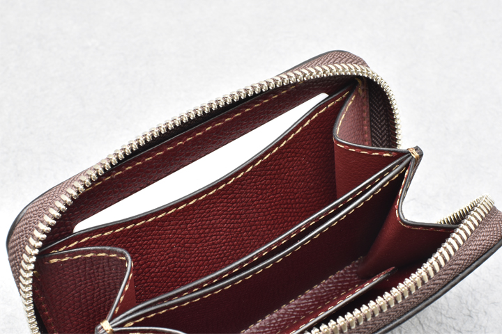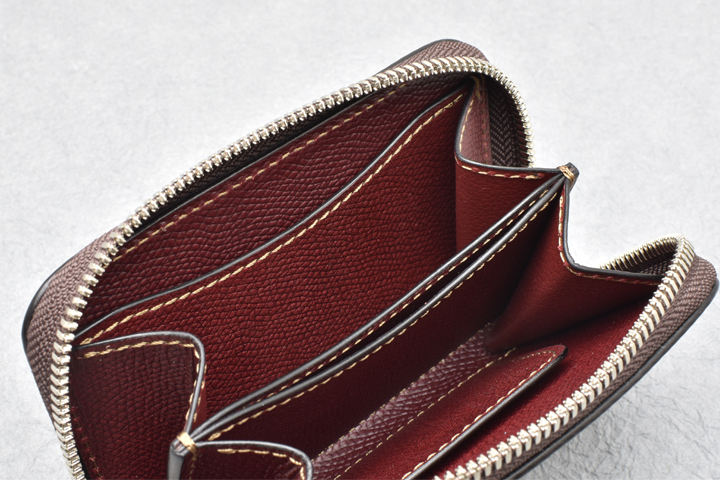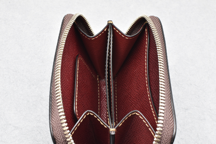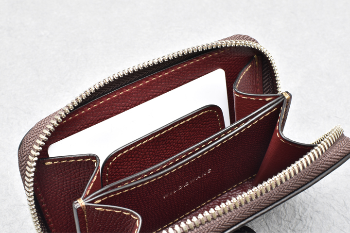 コインポケットは左右にマチの付いた形状で大きく開き、容量も豊富です。