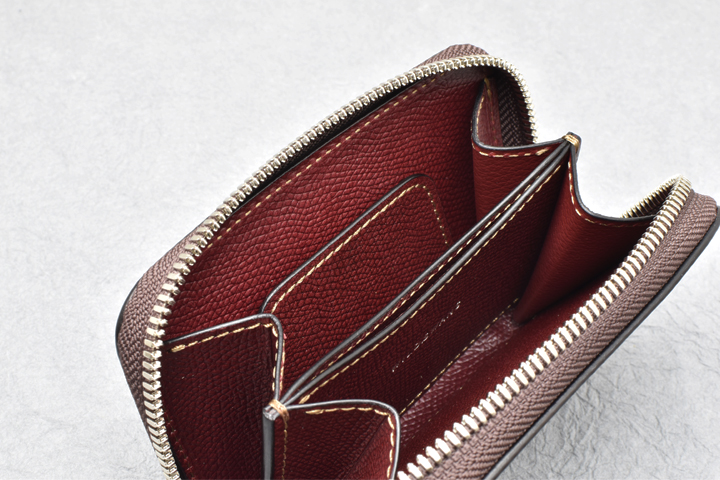 こちら側の収納部はコインケースとしての仕様を想定しており、コインを収納した際に仕切パーツにはカードや畳んだ紙幣を挟みこんで収納することが出来ます。