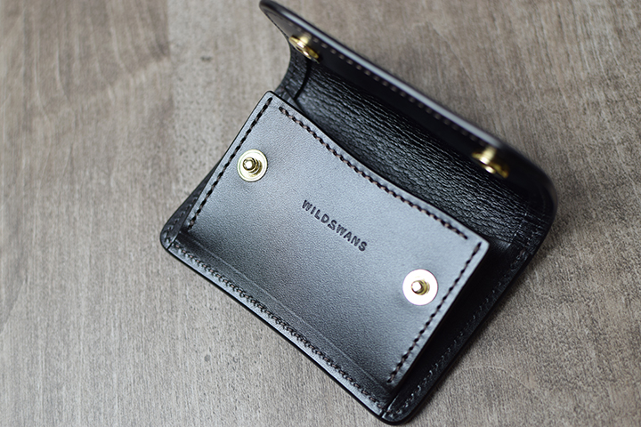 小さなアイテムではありますが、本体背面のカードポケットやコインケース内部の仕切り(ベロパーツ)など使い勝手に配慮したWILDSWANSらしいギミックを盛り込んでいます。
