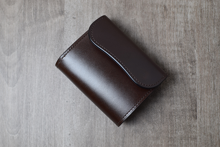 コロンとした丸いフォルムが印象的な三つ折り財布です。