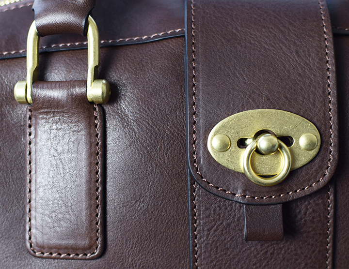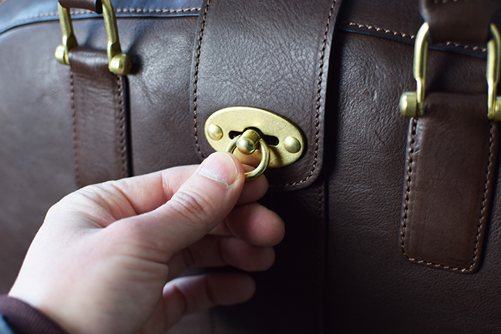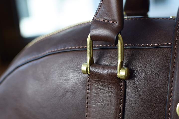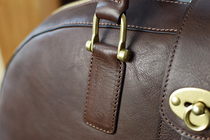 60th.BOSTONのもう一つ印象的な部分としては、金具使いが挙げられます。金具はゴールドカラーの真鍮が用いられ、ボストンバッグそのものをクラシカルな雰囲気に仕立てています。