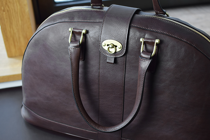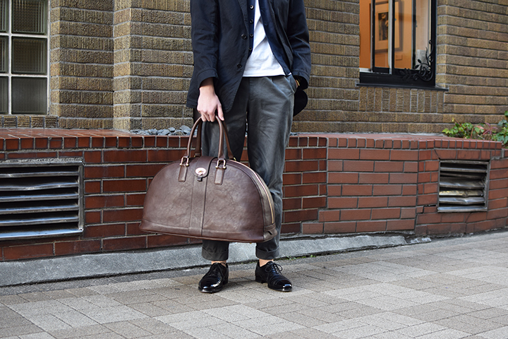 60th.BOSTONは、底面から半円を描くような美しいカーブにより全体のディテールを構成しています。革製のバッグでドスンとした頼もしい存在感がありますが、重量は約1.65㎏と見た目に比べて軽く仕上げています。外装にポケットは装備していませんが、こうした余計なパーツを排除することで、大きなサイズでありながらもシンプルですっきりとした存在感の高いバッグに仕上げています。昨今は、ナイロン等素材の進化もあり、60th.BOSTONのような大きさの革製ボストンは、非常に珍しい存在となりました。
