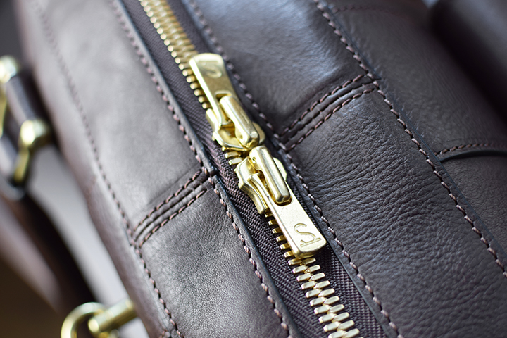 こちらはエクセラのダブルファスナーです。比較的幅の広い番手のファスナーですが、務歯を丁寧に磨き上げたエクセラファスナーは、開閉が滑らかです。