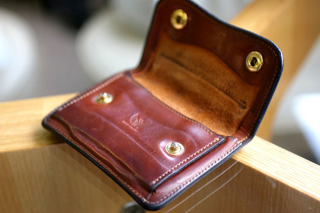 この新しいお財布には、再び長い年月をかけてOさんの年輪が刻まれていくのと同時に、作り手の年輪も新たに刻まれていきます。これから10年位先に「昔はこういうのを作ったな~」と、作り手同士で言い合ってるかも知れません。