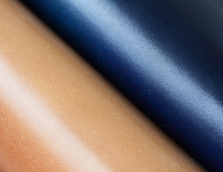 使用期間は約2年ですが、色の熟成が深まって実に良い雰囲気のエイジングです。また、使用前より光沢が増しています。残念ながらインテンスブルーのエイジングサンプルのご用意がございませんが、こちらも使用することで光沢が増すと共に色味が1トーンから2トーン濃く変化します。