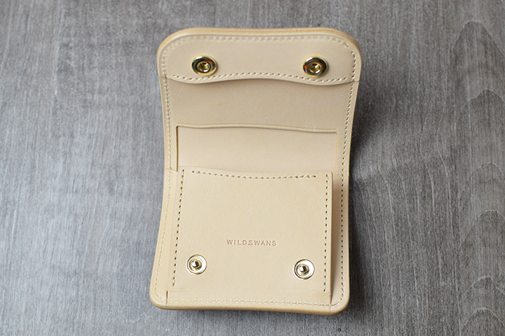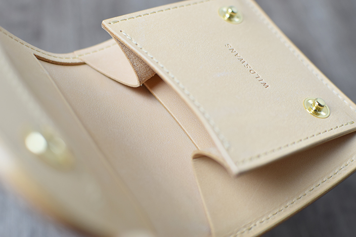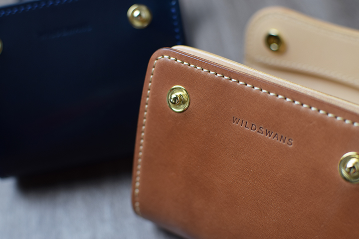もう一方のカラーは、ナチュラルです。WILDSWANSの直営店では、2015年のC.O.U.銀座店7周年記念以来の登場です。ややブラウン系の色味ですが、無染色のヌメ革で「ナチュラル」の名前の通り、革本来の表情を堪能できるカラーです。加えて、無染色であるが故に楽しめる、変化の度合いが大きなエイジングも期待できます。
