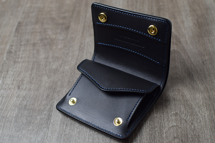 本体のフラップを開くとコインケースが現れます。ここでPALMと異なるのは、コインケース自体にもフラップを設けている点です。こちらにより本体を傾けた際も、中に収納したアイテムが落下することはありません。この点については、「慣れ」の部分の要素が強いものの、お使い始めからスムーズに操作できる直感的な操作性は、kf-003の強みでもあります。