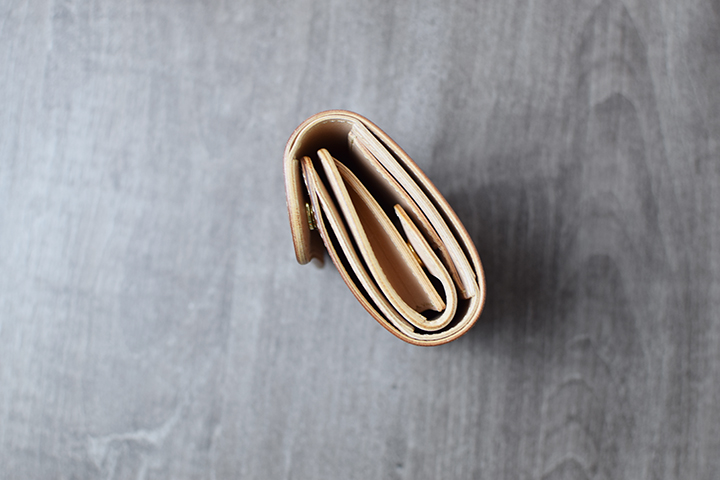 札室は本体の片側です。一万円札がギリギリ入る位のサイズ感です。コインケースにフラップが付属しないことや札室のサイズがやや小さいことは、PALMが携帯性を重視したミニ財布であることを裏打ちしているとも言えます。
