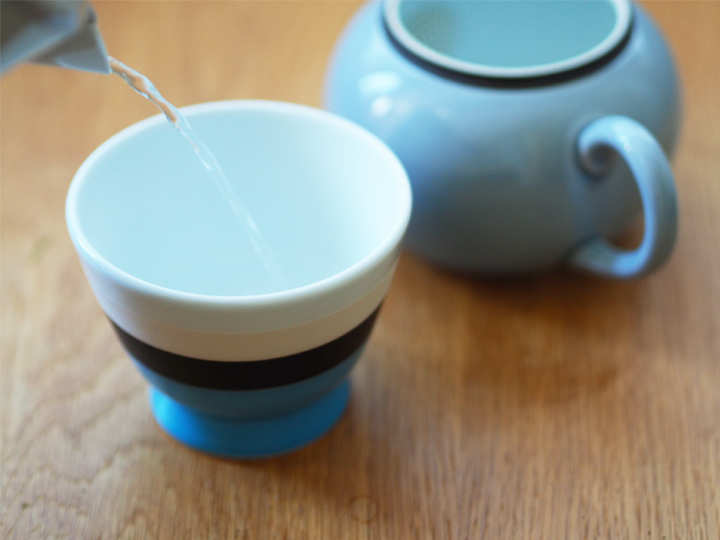 ① ポットやカップ等の使う器類は予め湯通しして温めておきます。なおポットは茶葉がジャンピングするよう、保温性の高い陶磁器かガラス製の、できるだけ丸型のタイプが適しています。