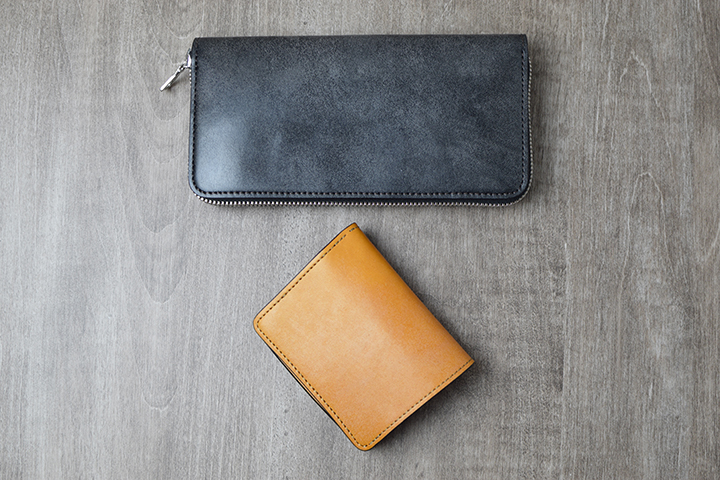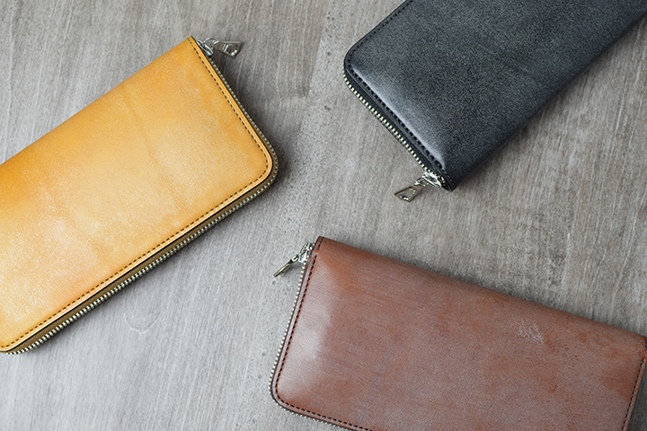 フルグレインブライドルレザーのバージョンとなることでより存在感を増したkf-001。男心くすぐる長財布に仕上がりました。