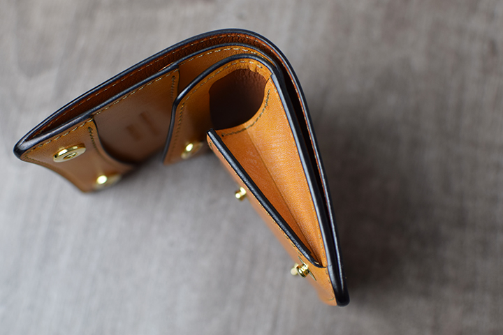 古瀬氏とWILDSWANSが考える機能美を体現したミニ財布のkf-003。フルグレインブライドルレザーを用いたことで、屈強ながらも美しいミニ財布に仕上がりました。