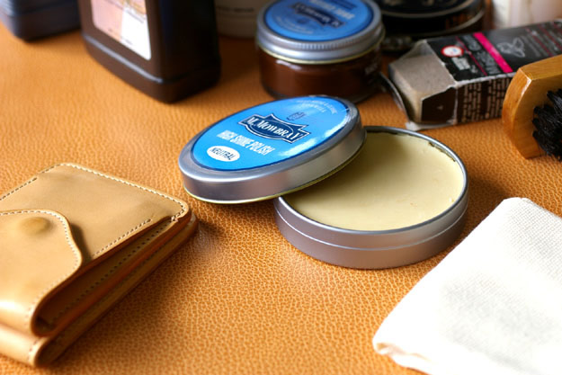 使用するクリームですが、シューケア用品を扱っているところの物で構いません。(乳化性の所謂靴用クリームで、鑞と油脂が入っている物です。同じ皮革靴用であってもオイルメインの物よりも鑞メインのクリームの方が良いです。)