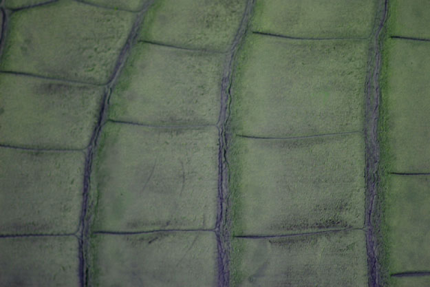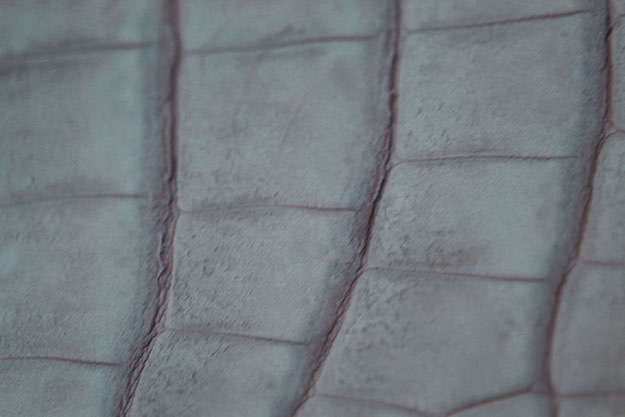 ヌバッククロコダイルは表面をバフがけして毛羽立たせていますので、手触りがビロードの様で大変触り心地が良く、フワッとした印象です。