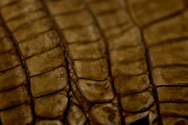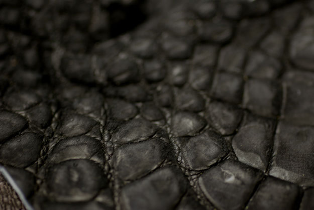 通常の光沢があるものは硬質なイメージですが、ヌバッククロコダイルは柔和な印象でシックな趣きがあります。