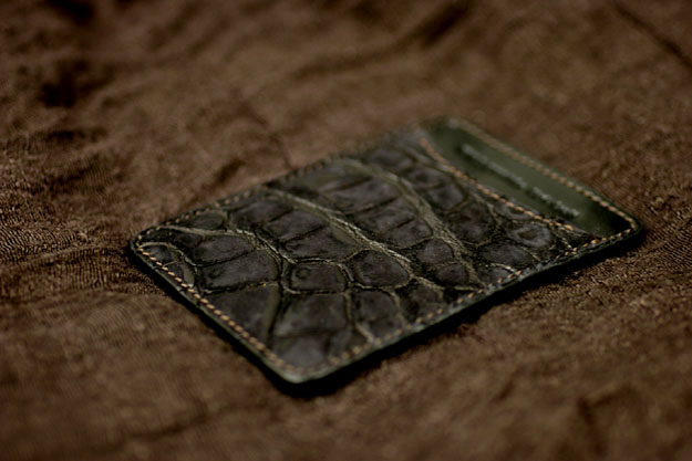 アイテムは上の写真のマチなしパスケース(ポケット1室のみのシンプルなパスケースで、C.O.U.の1周年記念のノベルティと同じ形のものです。)とキーホルダーのBRANCH(ブランチ)、コインケースのTONGUE(タン)の3型となります。また、これらのヌバッククロコダイルのシリーズは伊勢丹別注仕様となっていますので、C.O.U.では取り扱っておりません。ご免なさい。