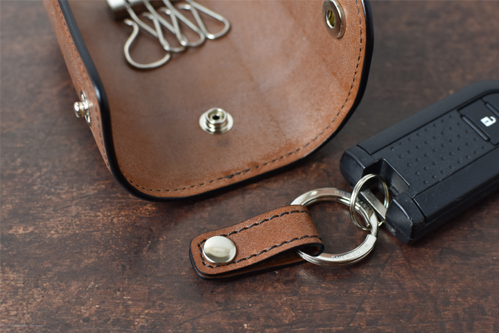 また、この2重リングにストラップを通し、鞄のハンドルなどに繋げれば鞄の中で迷子になることはありません。手軽にお使い頂けるため、初めてフルグレインブライドルレザーをご購入頂くお客様におすすめのアイテムです。