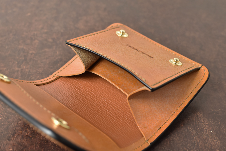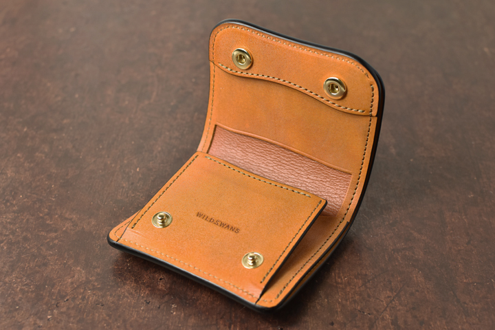他の財布に比べ薄造りとなっていますが、損傷しやすい角部分に丸みを持たせることにより耐久性も兼ね備えています。この丸みを持たせた造形は、WILDSWANSの様々なアイテムに取り入れられています。