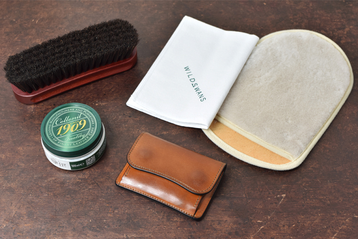 ここでフルグレインブライドルレザーのお手入れについてご紹介させて頂きます。