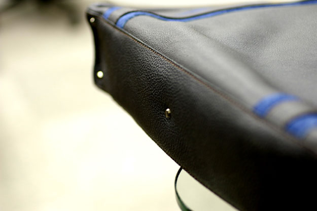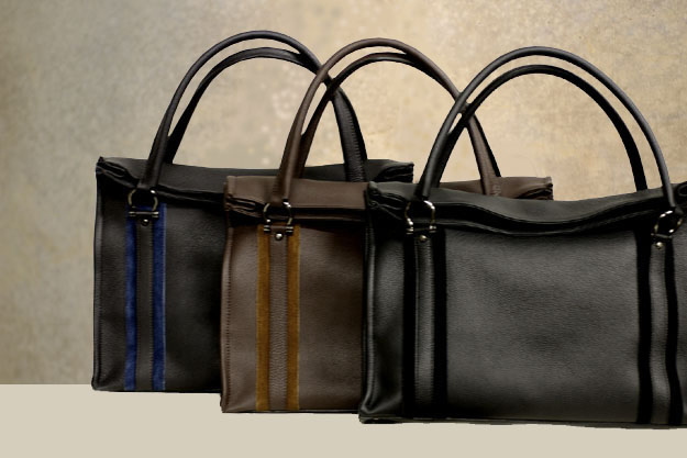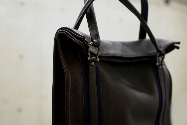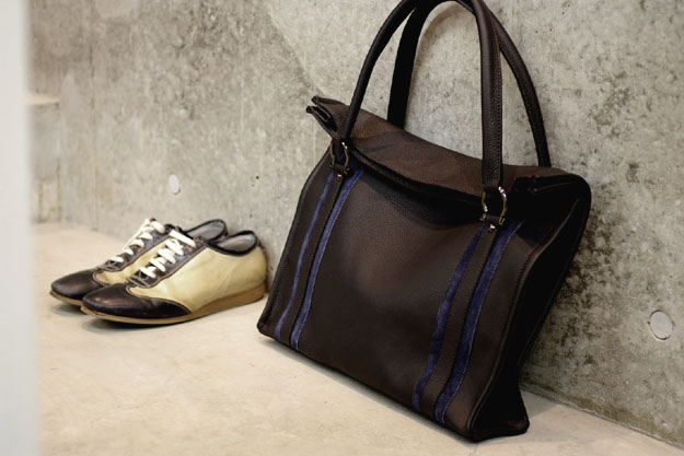 また荷物を沢山詰め込んだとしても、歪に膨らむことがないので全体のシルエットにも影響しません。ハンドルはシュリンクカーフの丸持ち手で、少しだけ太めにしてあり耐久性を持たせてあります。
