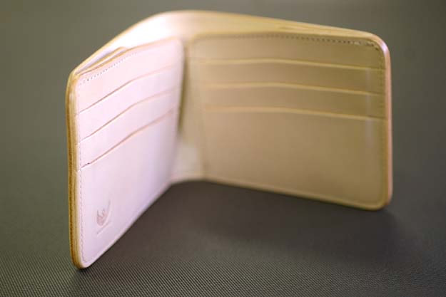 WINGSに限らずWILDSWANSの革小物で使用しているベルギー、マシュア社のナチュラルの革は、他社の革と比較すると色が付いてくるスピードが大変遅いので、飴色になるまでは長い年月を必要とします。