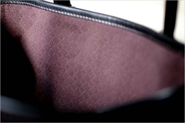 鞄の内側には6角形柄のオリジナルで作ったコットン生地を使用しています。ライナーの生地としては少し厚手の作りで、薄手のナイロン生地では得られない手触りの良さと丈夫さを感じることが出来ます。