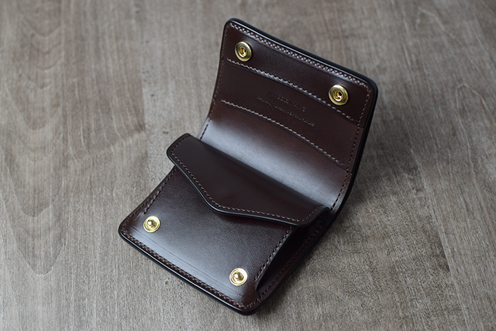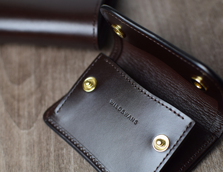 WILDSWANSでは古くから展開しているアイテムの一つですが、近年のミニ財布ブームから高い人気を誇る注目のミニ財布です。内装を覆うフラップは2点のホックで開閉します。