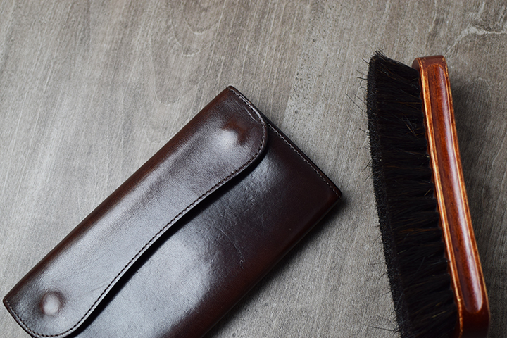 ご紹介したアイテムはいずれも素晴らしいエイジングを遂げていますが、特別なお手入れを頻繁に行う必要はありません。サドルプルアップは、元々皮革内部に豊富な油分を蓄えているため、基本的にはブラッシングと柔らかい布を用いての乾拭きでのお手入れを定期的(ひと月に一回程度)して頂ければ十分です。クリームについては、過剰塗布による皮革表面の曇りの発生のリスクを避けるため、多くても半年に一回、そして一回の使用量は極少量に留めます。良質な原皮を用いたタンニン鞣しの皮革は、お手入れも手間いらずで、お使い頂く中でじっくりとエイジングさせることがポイントです。なお、タンニン鞣しの皮革は一般的に汗や湿気、水分の付着により風合いが変化します。風合いの変化は修復することが難しくなるため、できるだけこうしたリスクのあるものを避けながらお使い頂くことも重要です。