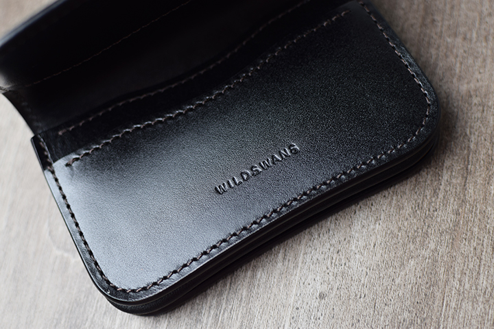 WILDSWANSを代表する名刺入れです。留め具がないフラップは、お使い始めサドルプルアップの強いハリ感により開いた状態となりますが、フラップを閉じた状態で保管しますと、少しずつ革が馴染み自然とフラップが閉じるようになります。
