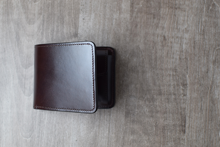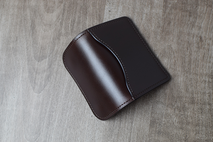 使い始めからどなたにも扱いやすいスタンダードな二つ折り財布のGROUNDERです。先にご紹介したサドルプルアップGENERALと同様に留め具を設けていないので、革が馴染むまでは外装が開いた状態となりますが、1~2年して革が馴染むと少しずつ外装が閉じるようになります。