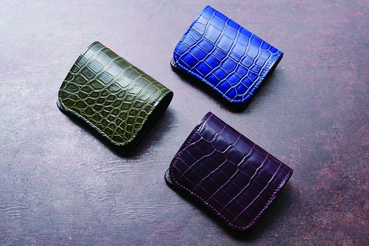 - ●多機能コインケース・クロコダイル×型押しイングリッシュブライドルTONGUE(タング)・・・44,000円(税込)