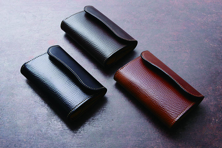 ホーウィン社で型押し加工が施されたシェルコードバンを用いた特別なアイテムです。
