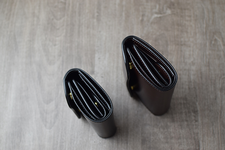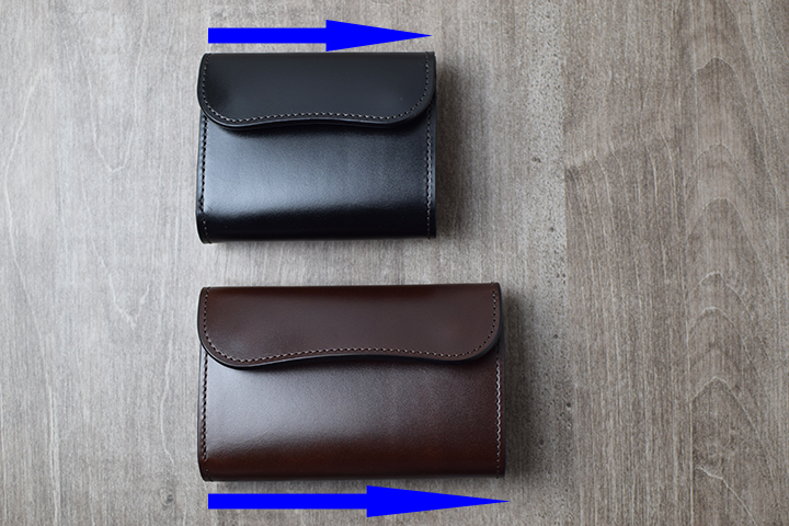 どちらも同じ三つ折り財布となりますが、今回は2品の仕様や違いを比べながらご案内させて頂きます。